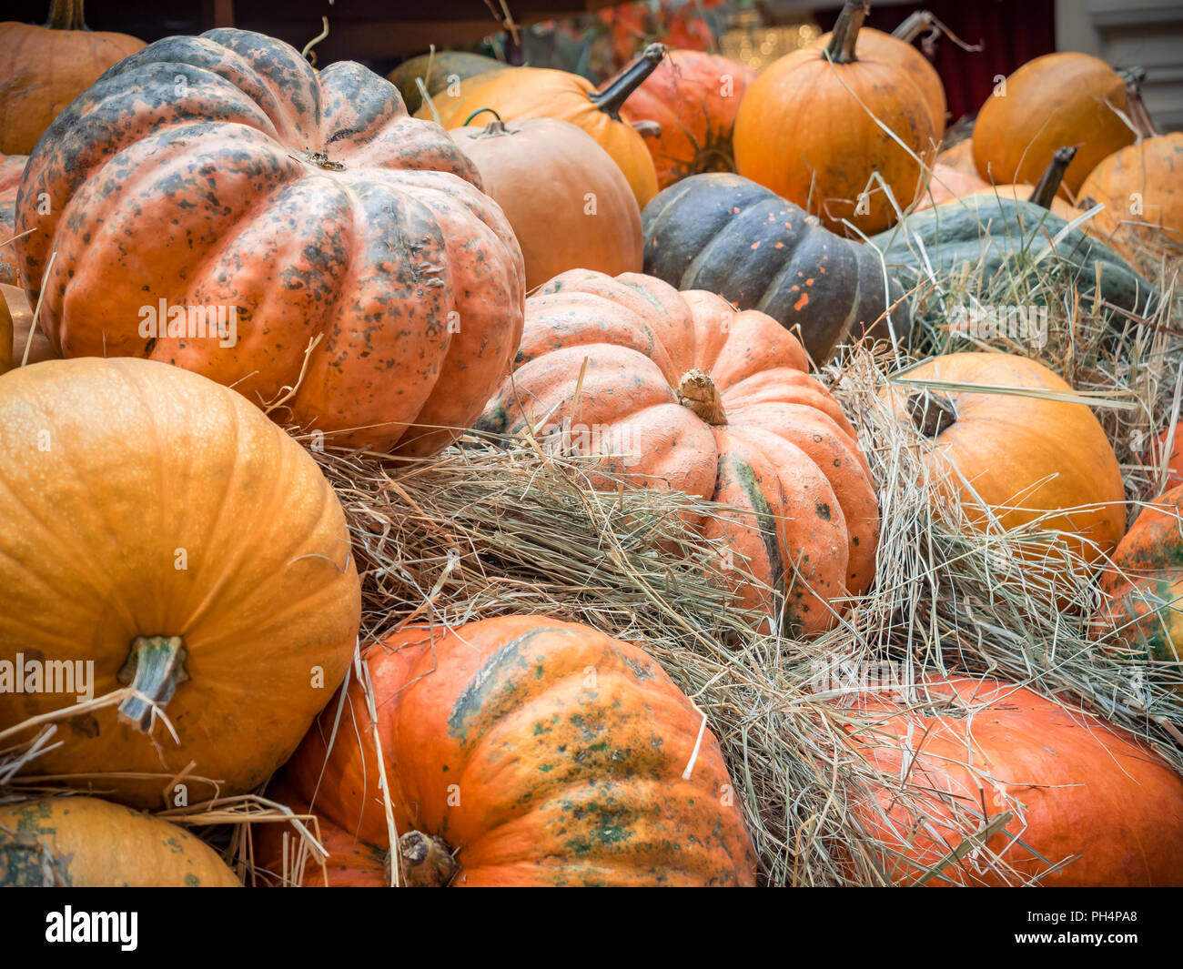 De Nombreuses Grandes Citrouilles Orange Sur La Place