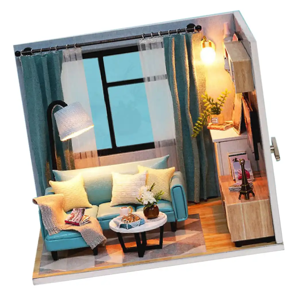 Bricolage Miniature Kit Maison De Poupee Cosy Le Coin Du Salon Avec Meubles Et Lumiere Pour œuvre Romantique Vie Heureuse Reunion
