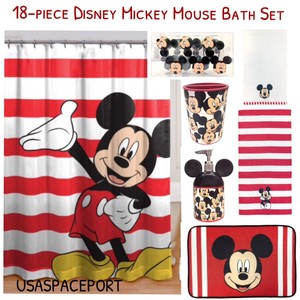 Details About 18pc Kids Mickey Mouse Complete Bathroom Set Shower Curtain Hooks Mat Towels Lot