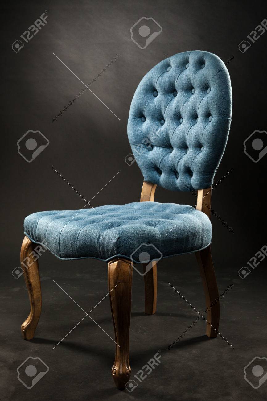 Antique Chaise De Velours Bleu Pres D Une Piece Sombre Vieux Meubles Vintage
