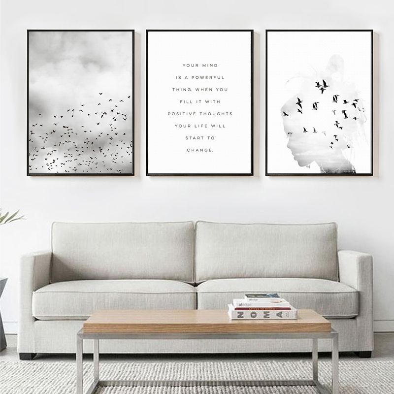 Acheter 3 Peintures Minimalisme Pour Envoyer La Decoration De La Maison Scandinave Peindre Le Ciel Et L Histoire D Un Oiseau Volant Decorations Pour