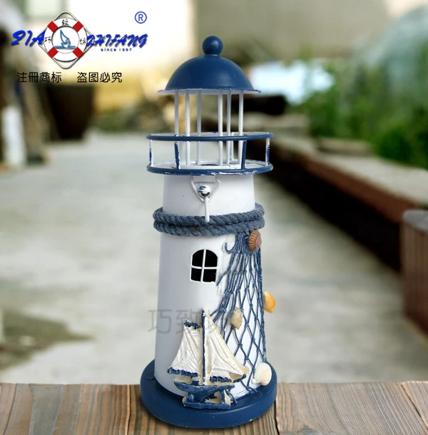 Blue And White Shell Fishing Net Metal Decoration Lighthouse