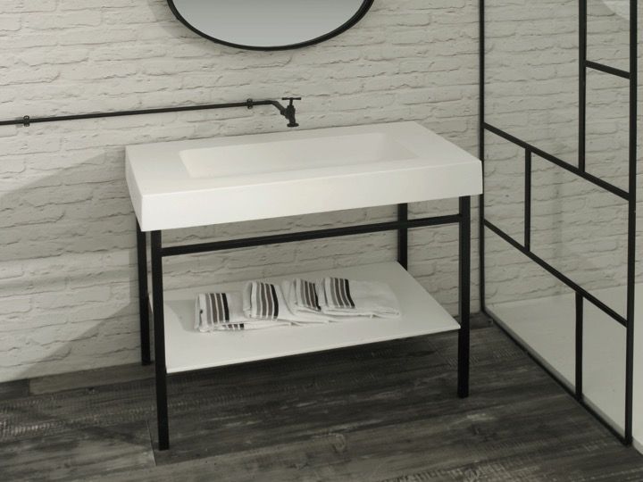 Console En Acier Noir Art Deco Avec Vasque Lavabo En Resine