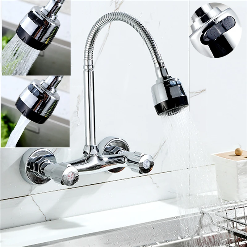 Chrome Poli A Double Bec Sortie Robinets De Cuisine Pont Monte Sur La Douche Pulverisateur Robinets De Cuisine Mitigeur