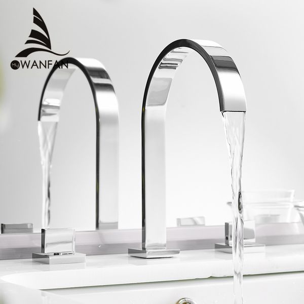 Acheter Robinets De Bassin En Laiton Poli Chrome Pont Monte Salle De Bains Evier Robinets 3 Trou Double Poignee D Eau Chaude Et D Eau Froide Lt 109 De