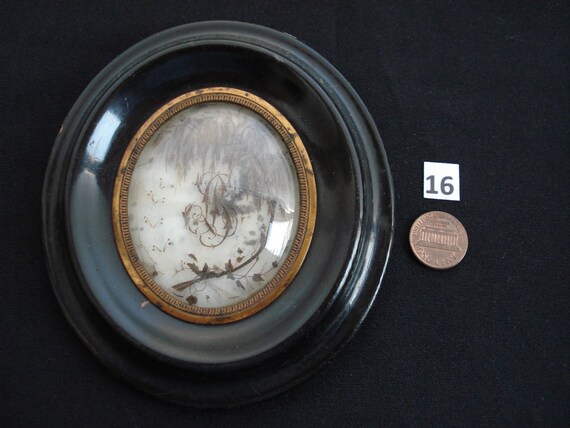 Antique French Reliquary Peinture Made Of Hair Memento Mori Mourning Of A Flower And Initianals Behind Glass Napoleon Iii 16 B