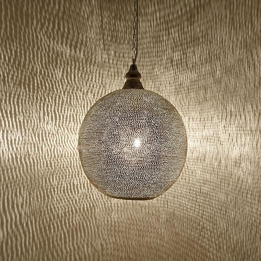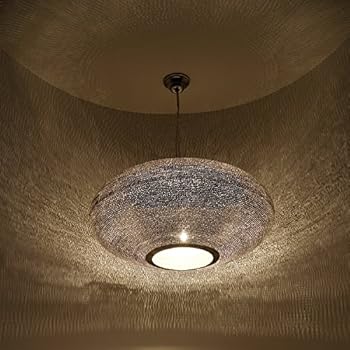Lampe Suspendue Orientale Veritable Laiton Argente Artisanat