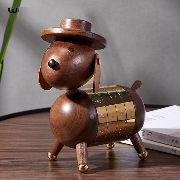 Acheter 2019 Haute Qualite Creative Maison Decoration De Bureau Dessin Anime Chien Calendrier En Bois Noyer Calendrier Chiot Cadeau Pour Enfants Ou