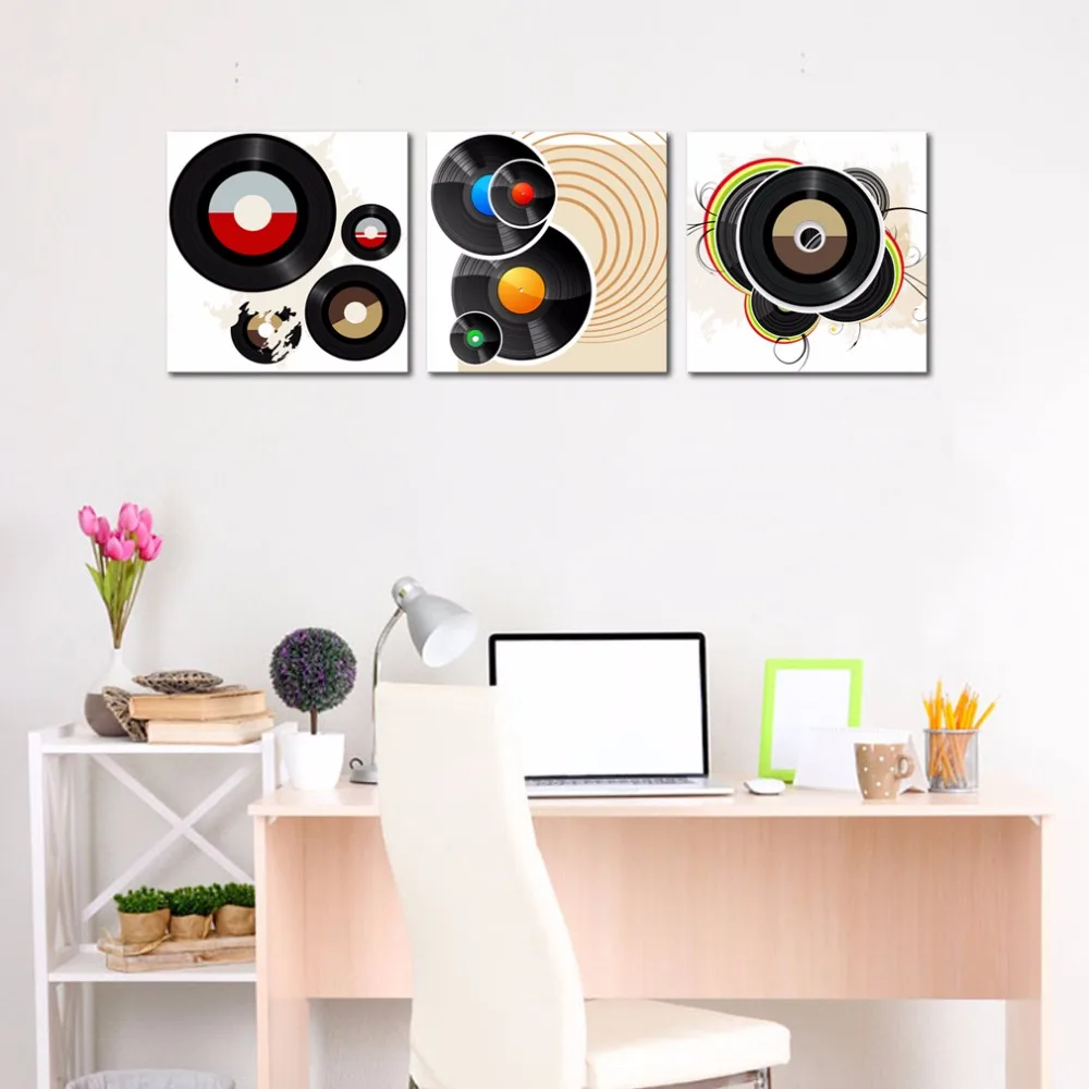 3 Panneaux Mur De Toile Art Musique Cd Image Decoration
