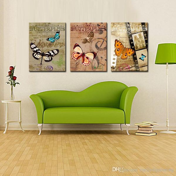 Acheter 3 Piece Enorme Moderne Abstrait Decoration Murale Peinture Sur Toile Avec Papillon Dans La Peinture A L Huile De Reve Sur Toile Decoration De
