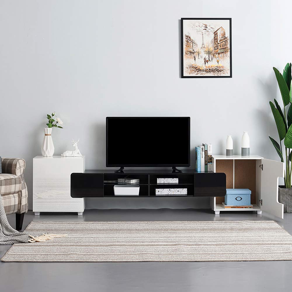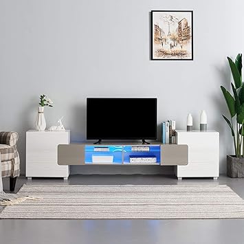 Soddyenergy Meuble Tv Moderne Grand Meuble De 230 Cm Blanc Mat Noir Gris Gris