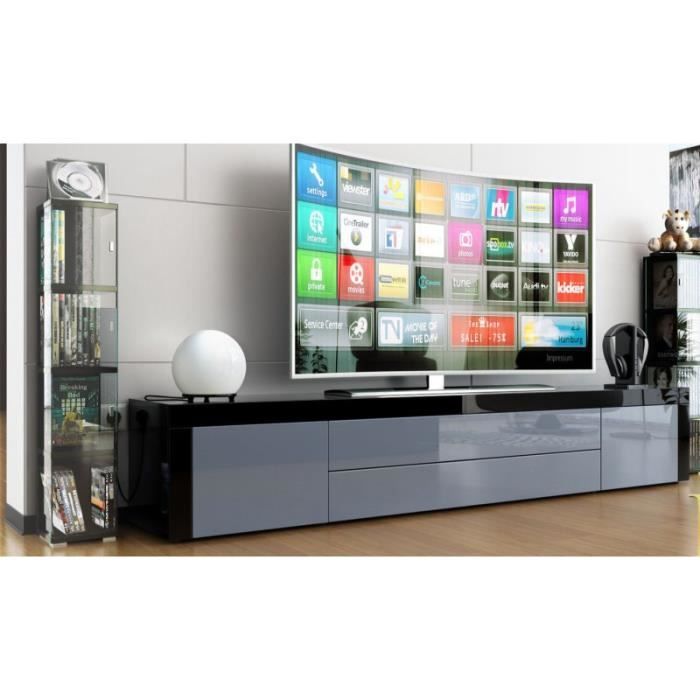 Meuble Tv Bas Laque Noir Gris Achat Vente Meuble Tv
