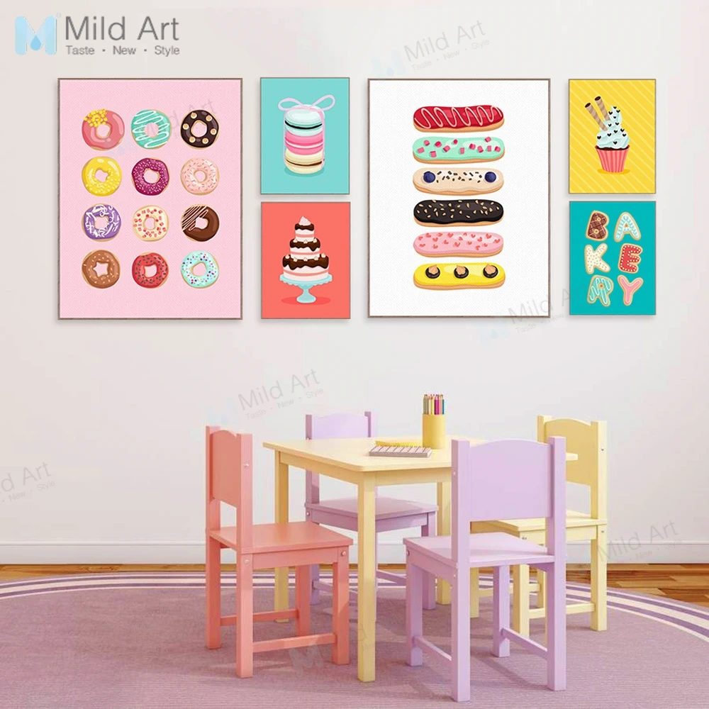 3 12 46 De Reduction Couleur Kawaii Gateaux Sucre Nourriture Beignet Affiches Imprime Grils Enfants Chambre Mur Art Photos Cafe Cuisine Decor A La
