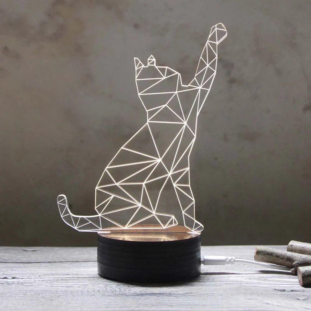Halloween 3d Chat Changeable Couleur Led Veilleuse Illusion