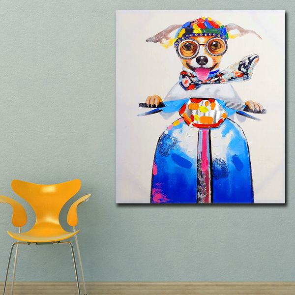 Acheter 1 Piece Pop Mur Art Couleurs Chien Biker Toile Peinture Pour Le Salon Decoration De La Maison Peinture A L Huile Sur Toile Mur Peinture No