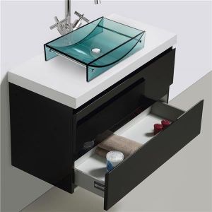 Meuble Suspendu Avec Simple Vasque En Verre Bleu Nuit Et