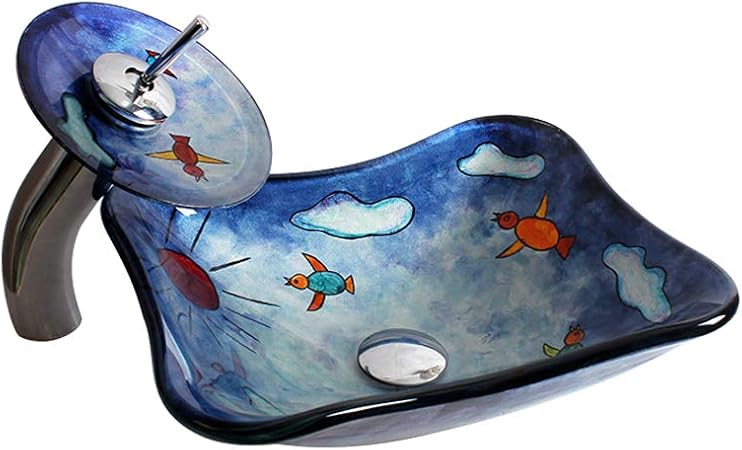 Homelava Lavabo Vasque En Verre Trempe Bleu Avec Robinet Cascade A Poser La Salle De Bain Garantie De 2ans