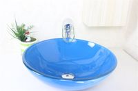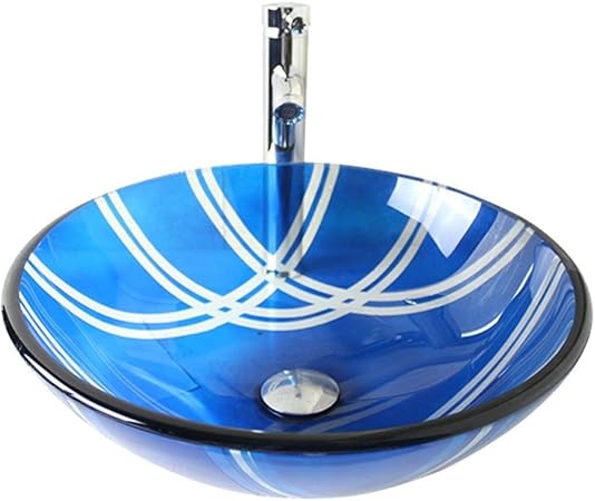 Vasque En Verre Trempe Rond Bleu Cascade Avec Robinet Pour Salle De Bains Toilettes