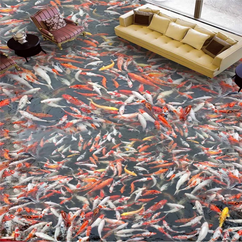 Moderne 3d Mural Auto Adhesif Etanche Hd Etang Poissons