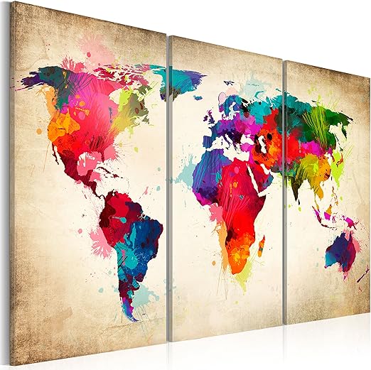 Murando Impression Sur Toile Intissee Carte Monde Vintage 90x60 Cm Tableau Tableaux Decoration Murale Photo Image Artistique Photographie Graphique 3