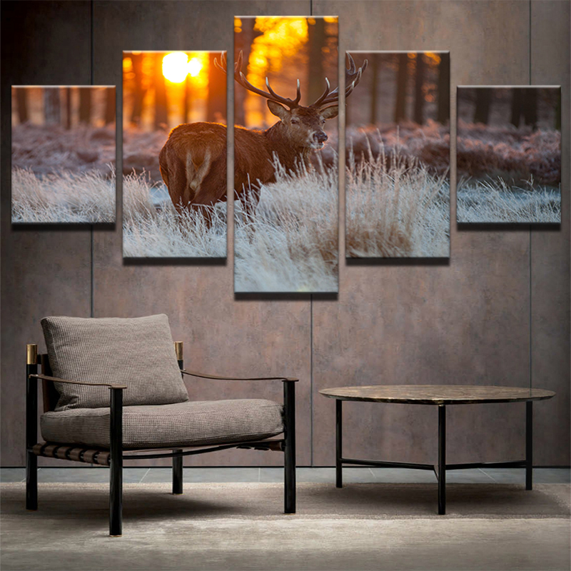 Acheter Mur Affiche Mur Modulaire Photo Pour La Decoration De La Maison Peinture Chambre Des Enfants 5 Panneau Animal Cerf Toile Art Print Imprimer