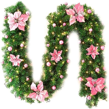 Fablcrew Decoration Noel Guirlande Noel Sapin Artificiel De 270 Cm Decoration Noel Decor Interieur Cheminee Vert Sapin Maison Porte Fenetre Rose