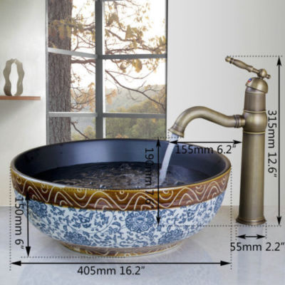 Details Sur Ensemble De Robinetterie En Laiton Antique Avec Lavabo En Ceramique Vasques