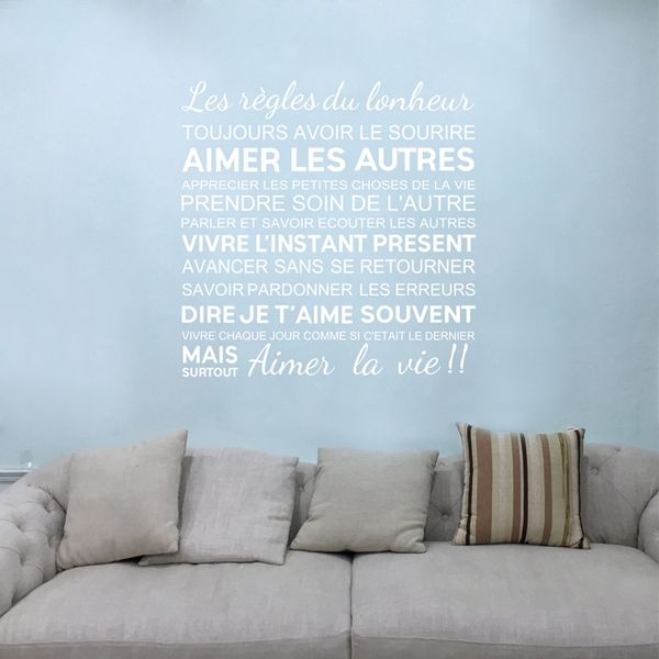 Acheter Diy Francais Citations Stickers Muraux Les Regles Du Bonheur Vinyle Stickers Muraux Decoration De La Maison Fq0001 De 4 63 Du Fst1688