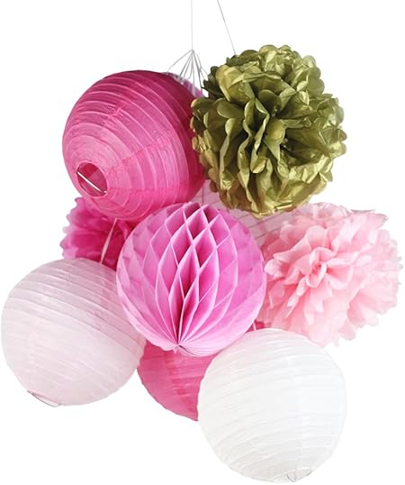 12 Pompons Papier Soie Argente Rose Fuchsia Gris