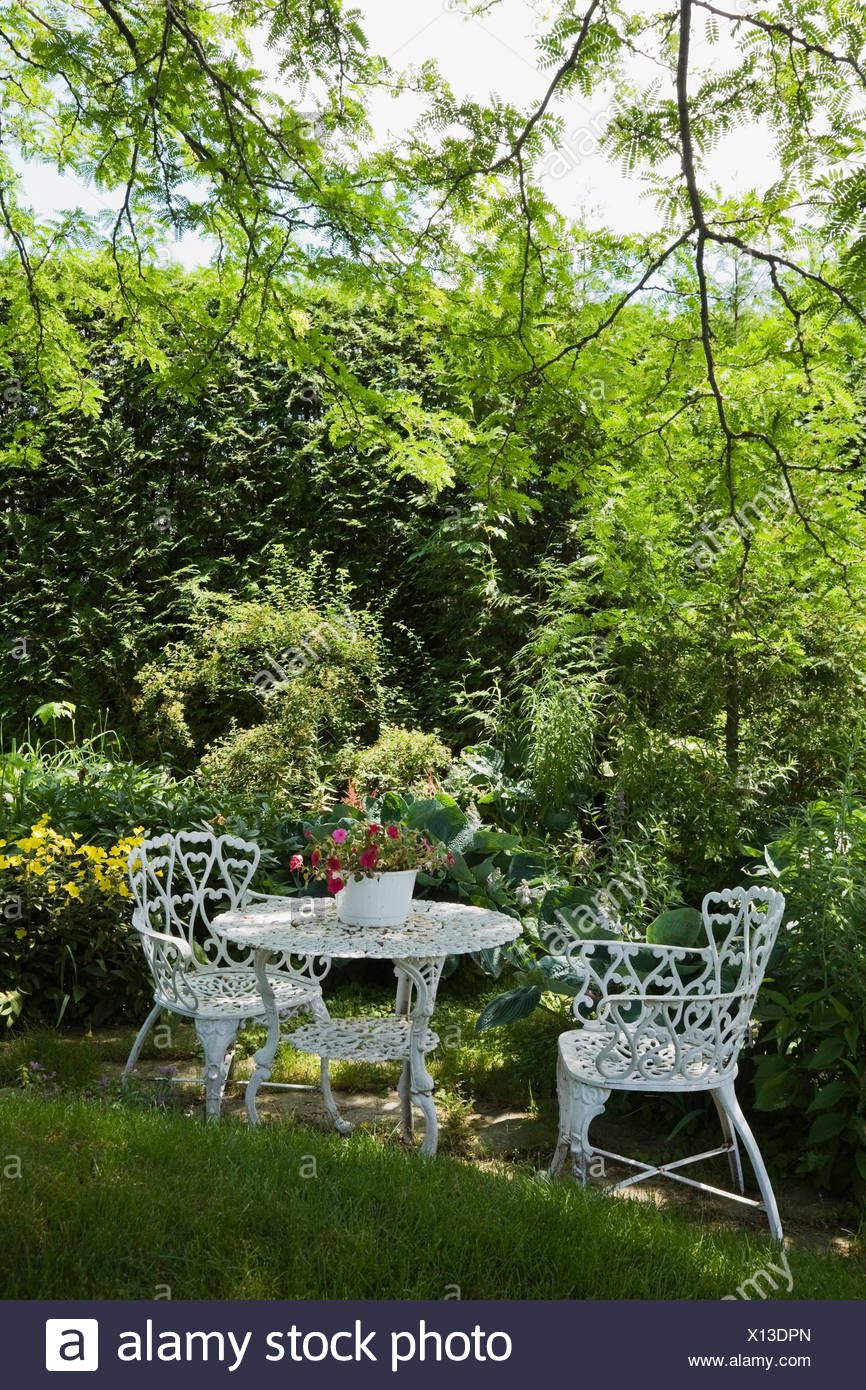 Metal Blanc Table Et Chaises De Jardin Dans Un Immeuble D