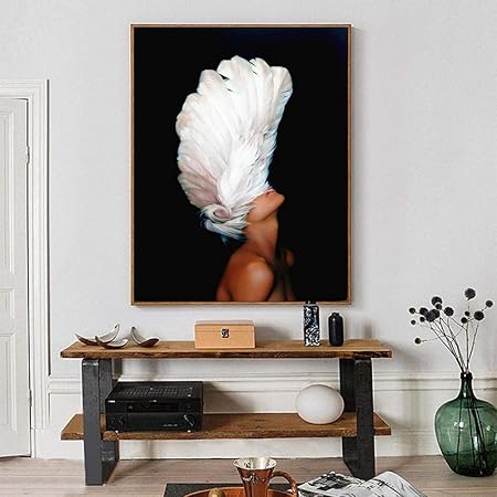 Rtckf Impression Sur Toile Art Fille Nue Et Plume Decoration