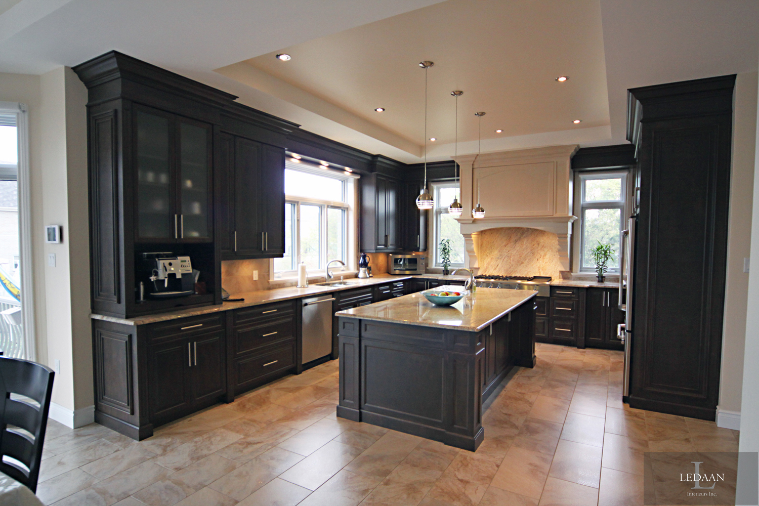 Nouvel Interieur De La Cuisine A La Maison Avec Des Meubles Brun Fonce Et Les Planchers De Bois Franc
