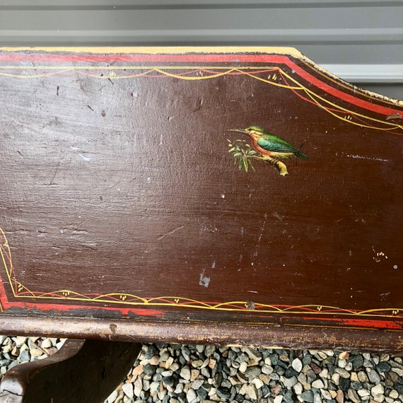 Antique Double Face Peinture A La Main Decore Plateau Bois