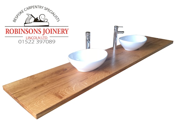 Flottant Chene Massif Vanite Unite Top Dalle Evier Lavabos Sur Mesure Rustique En Rustins A L Huile