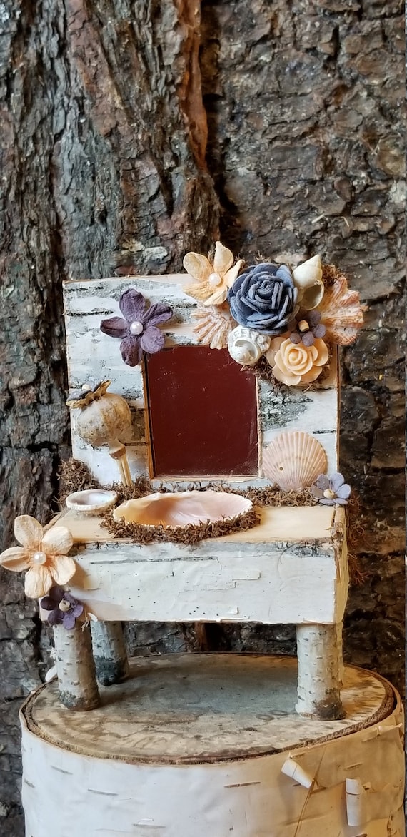 Unique Fait A La Main Fee Jardin Vanite Lavabo Miniature Et Miroir Accessoires Naturelles Fairy Garden Mobilier De Maison De Poupee Poupee Vanite
