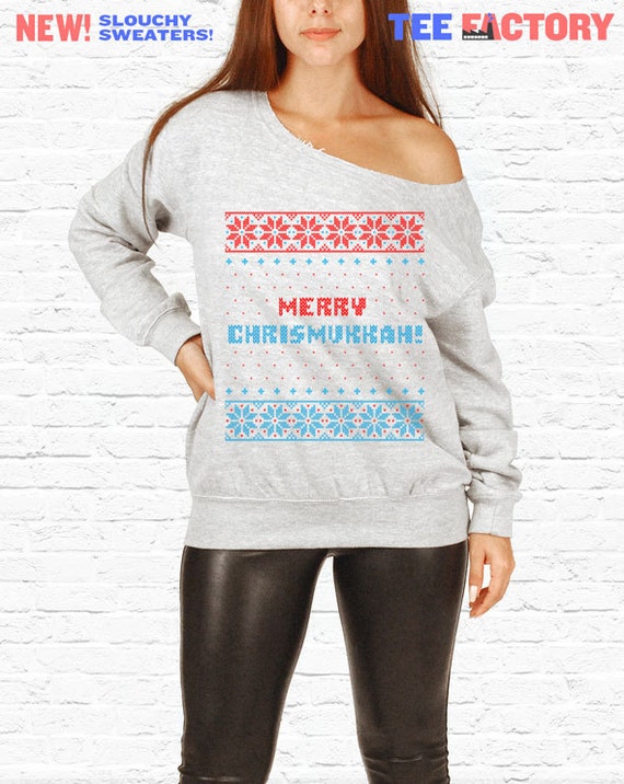 Chrismukkah Heureux Drole Noel Hanouka Slouchy Sweatshirt Plus Taille Hors Epaule Mixte Fete Fetes Juives Pull Tf 39